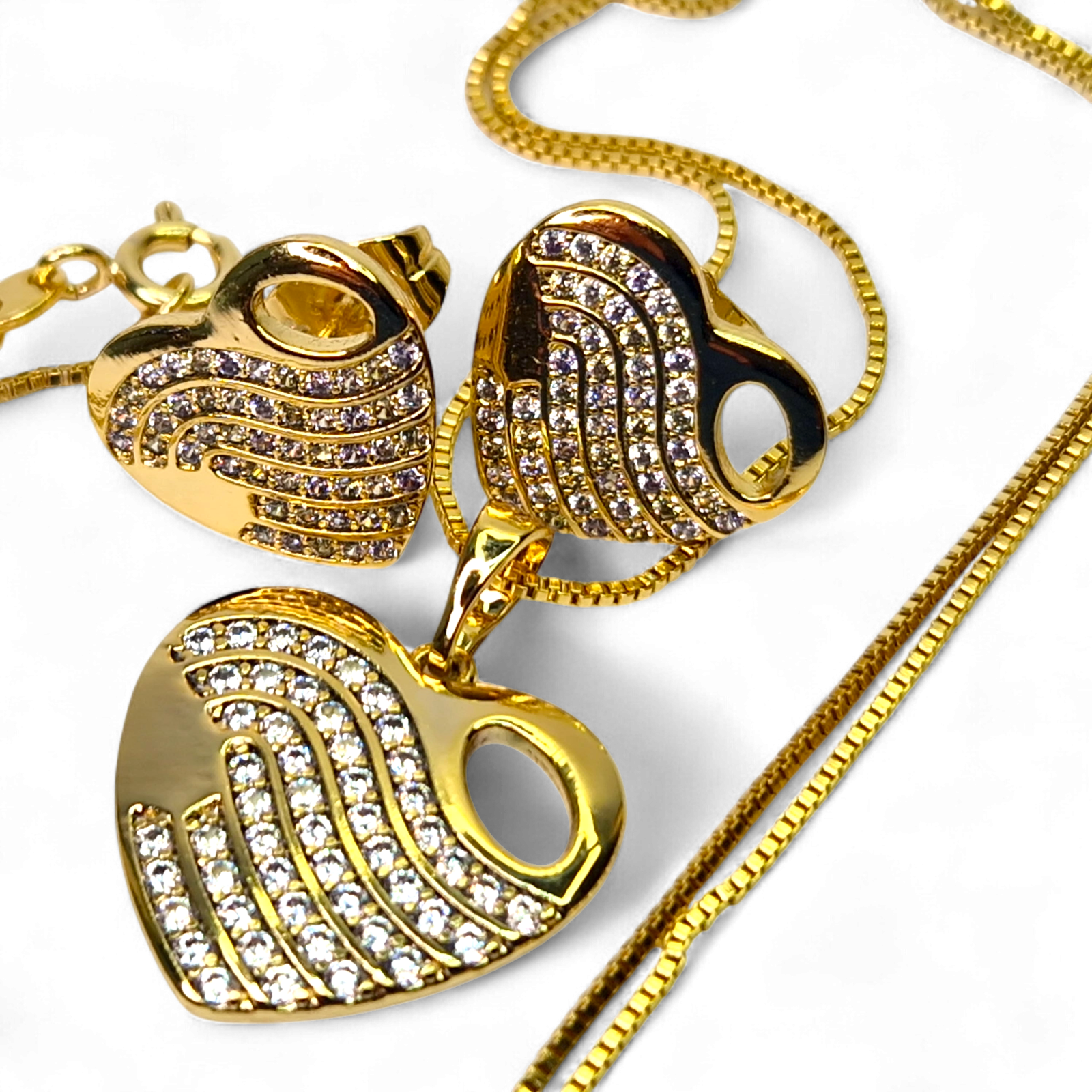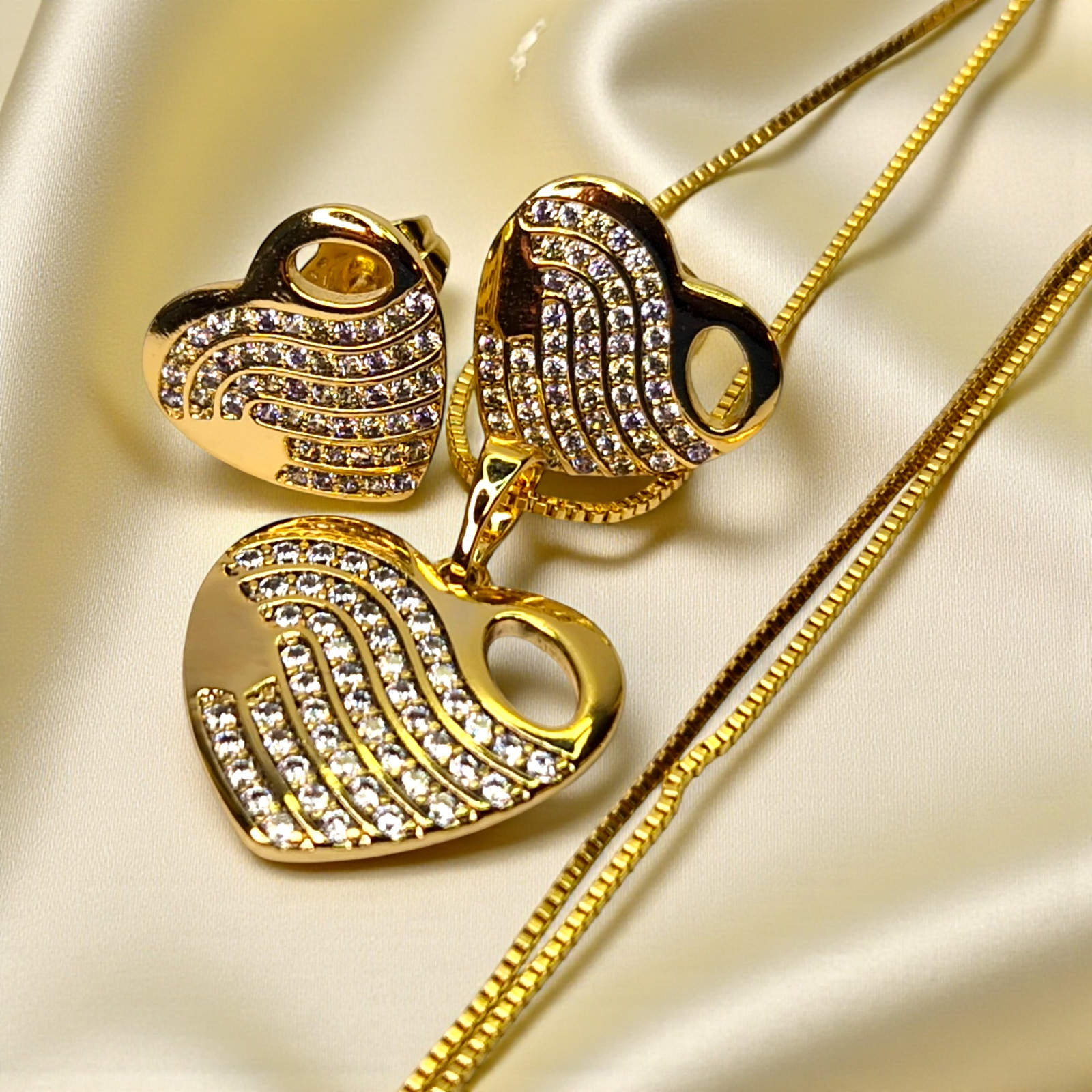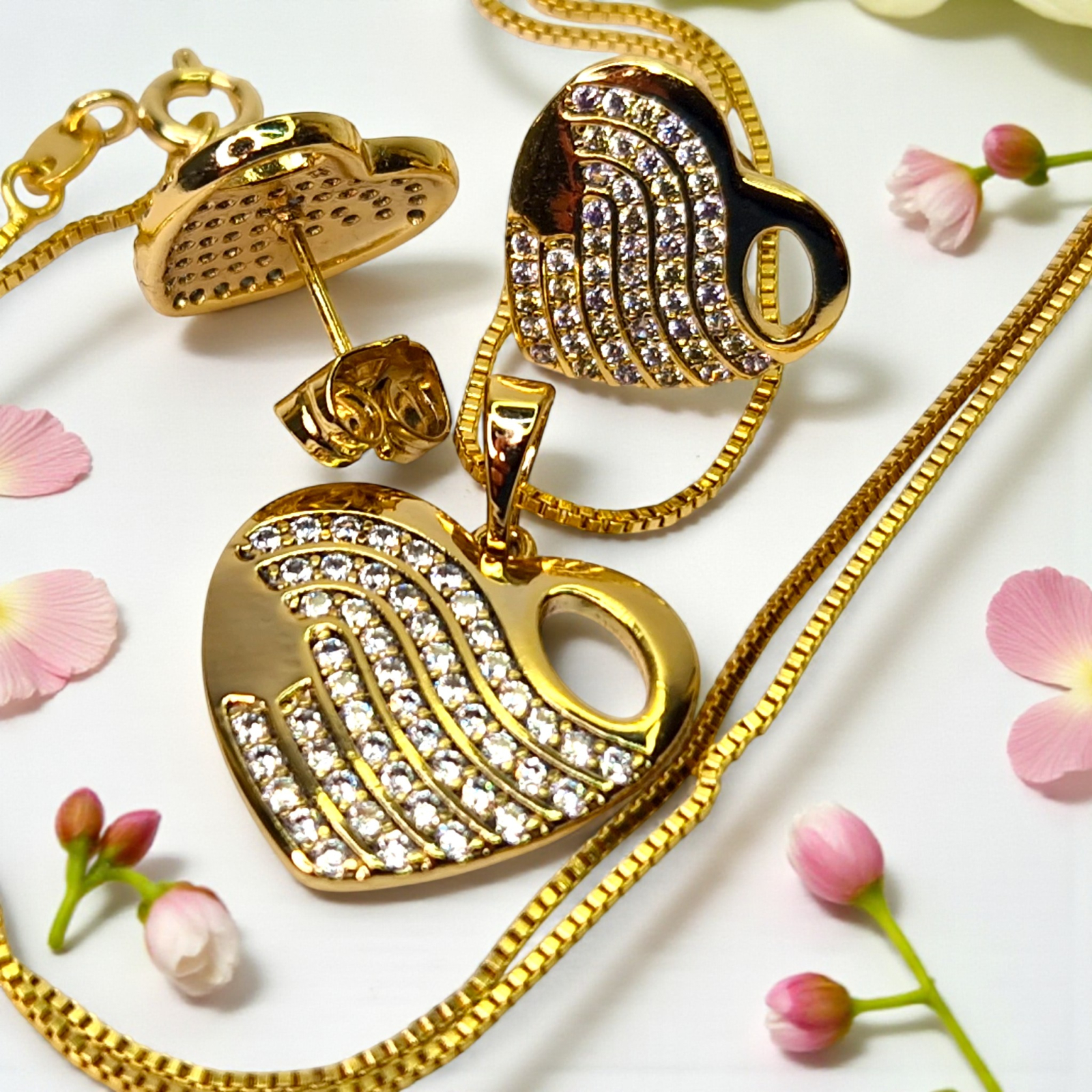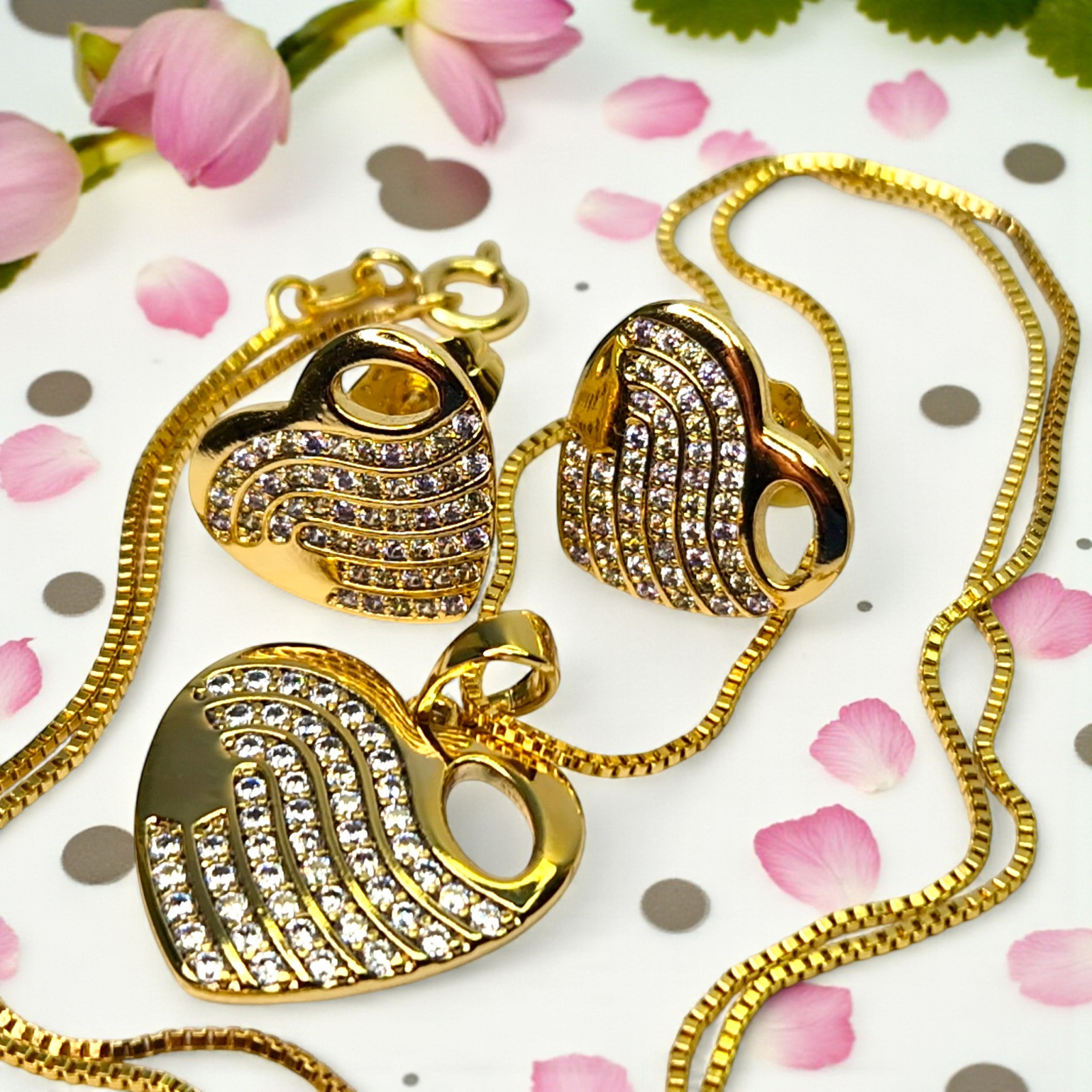 Inimioarele aurii reprezintă dragostea, delicatețea și feminitatea, transformând setul într-o bijuterie cu o semnificație emoțională puternică.