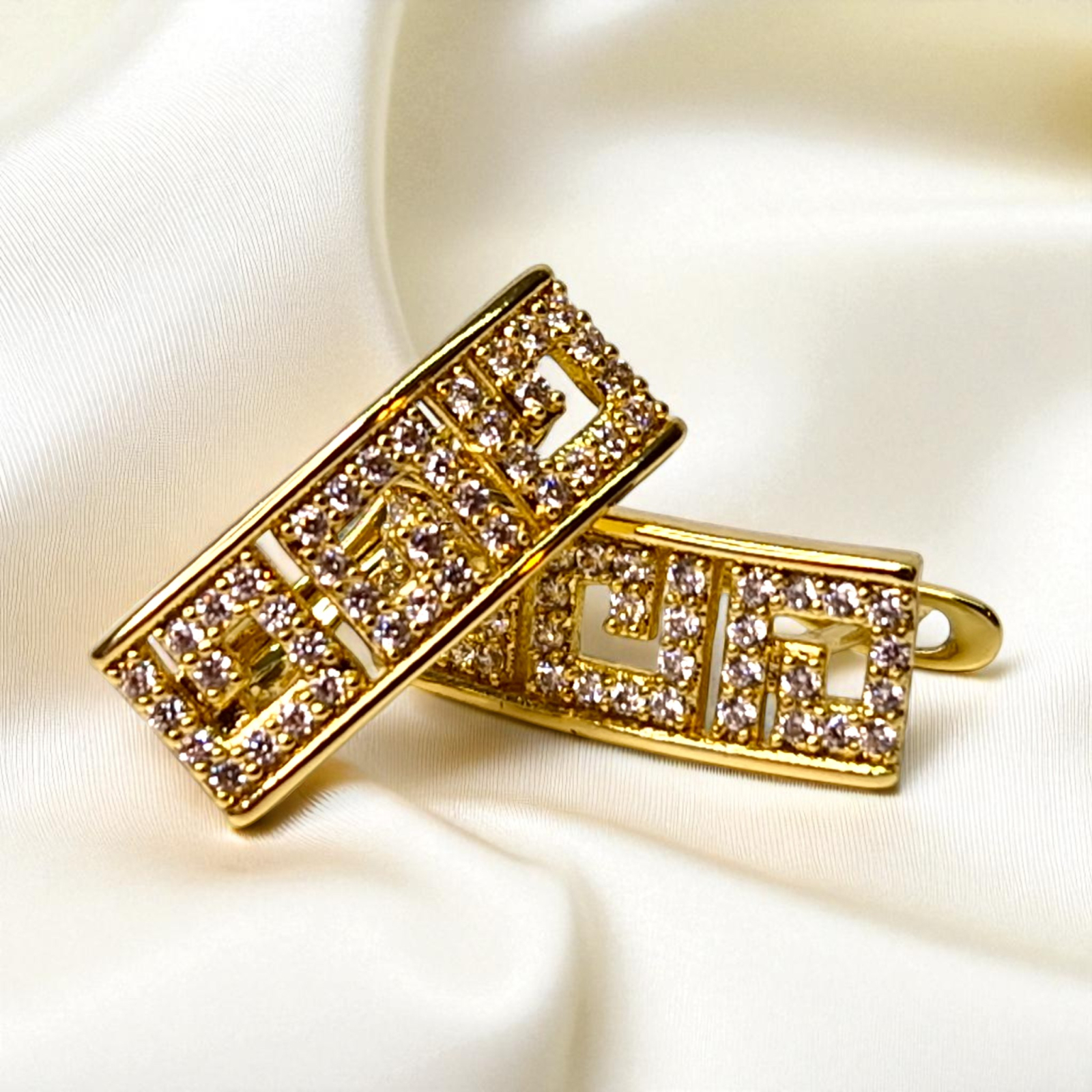 Fiecare pătrat și fiecare linie a cerceilor Ramya este conturată cu cristale fine, care reflectă lumina la fiecare mișcare. Strălucirea lor este elegantă, nu ostentativă, fiind exact acel tip de detaliu care adaugă un plus de feminitate și rafinament.