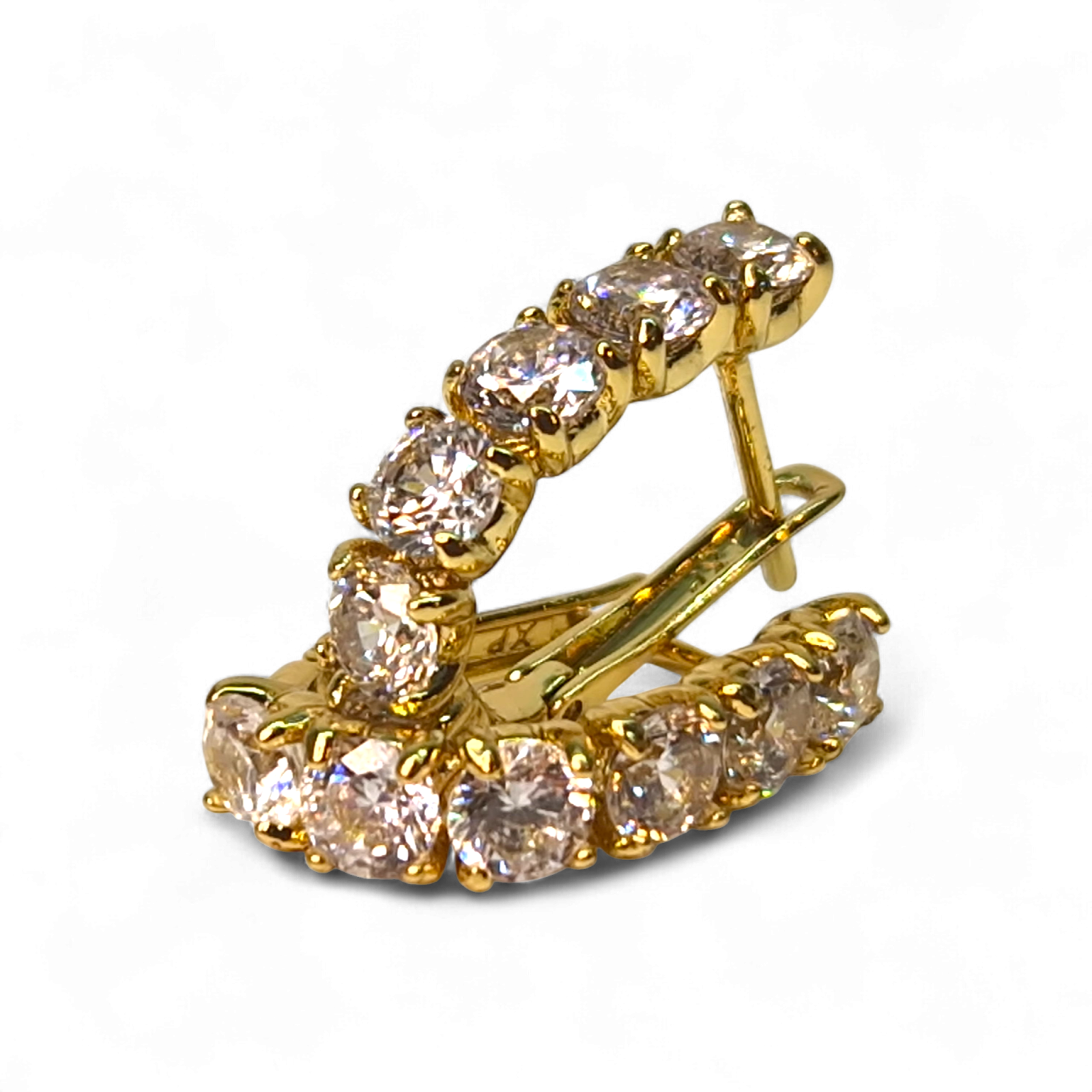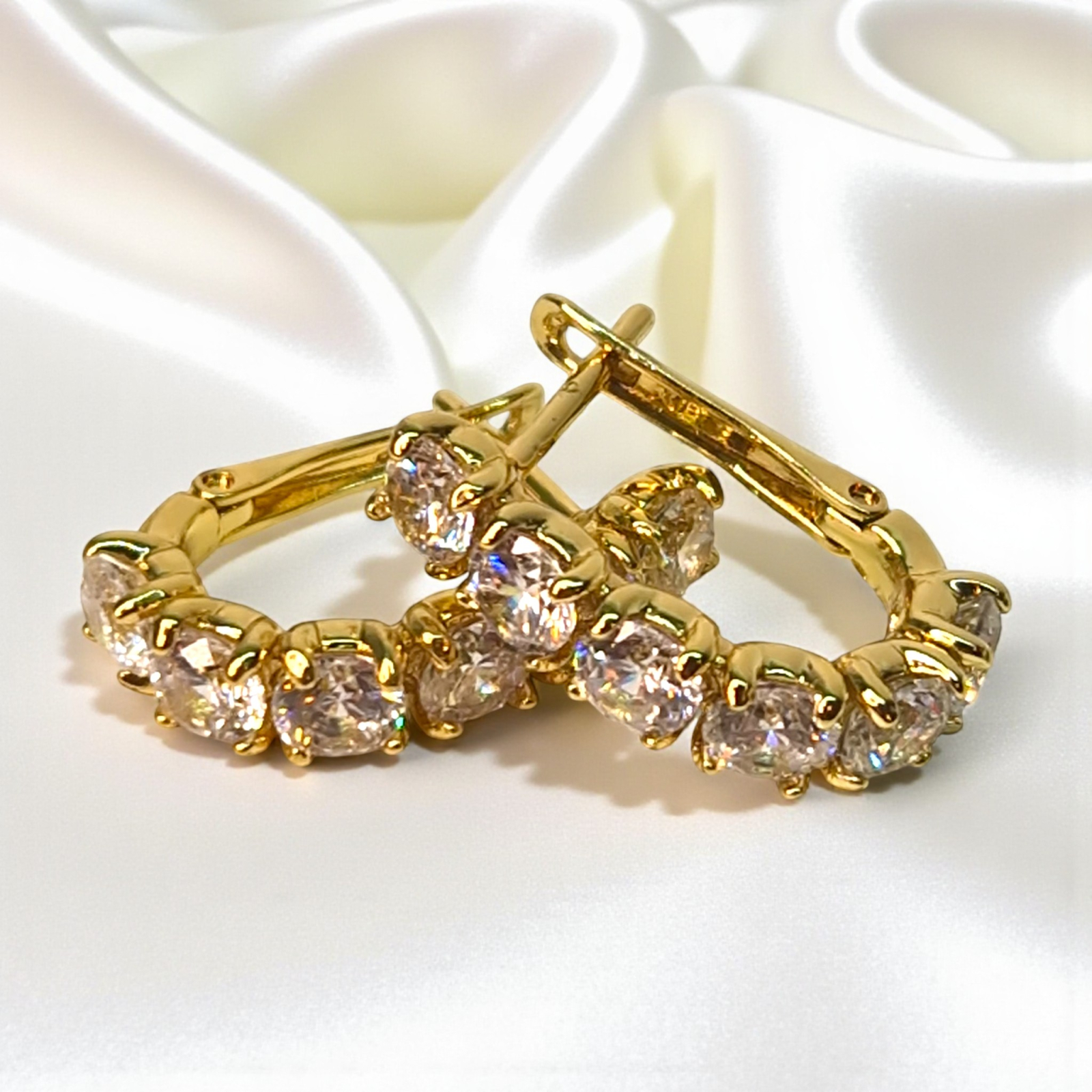 Purtând acești cercei, vei descoperi că fiecare apariție capătă mai multă încredere și rafinament. Cristalele strălucesc subtil, punându-ți în evidență chipul, iar aurul adaugă căldură și noblețe.