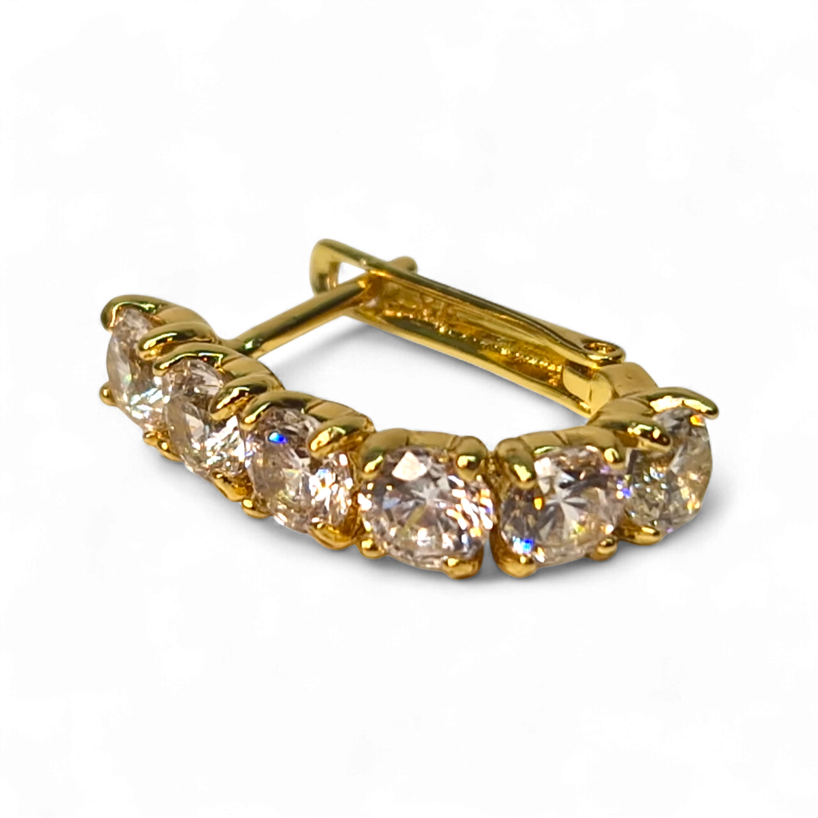 Cerceii Sydney impresionează prin rândul de cristale rotunde, perfect aliniate, care captează și reflectă lumina în mod spectaculos. Fiecare cristal este fixat cu grijă într-o montură aurie, creând un efect vizual asemănător unui șir de diamante.