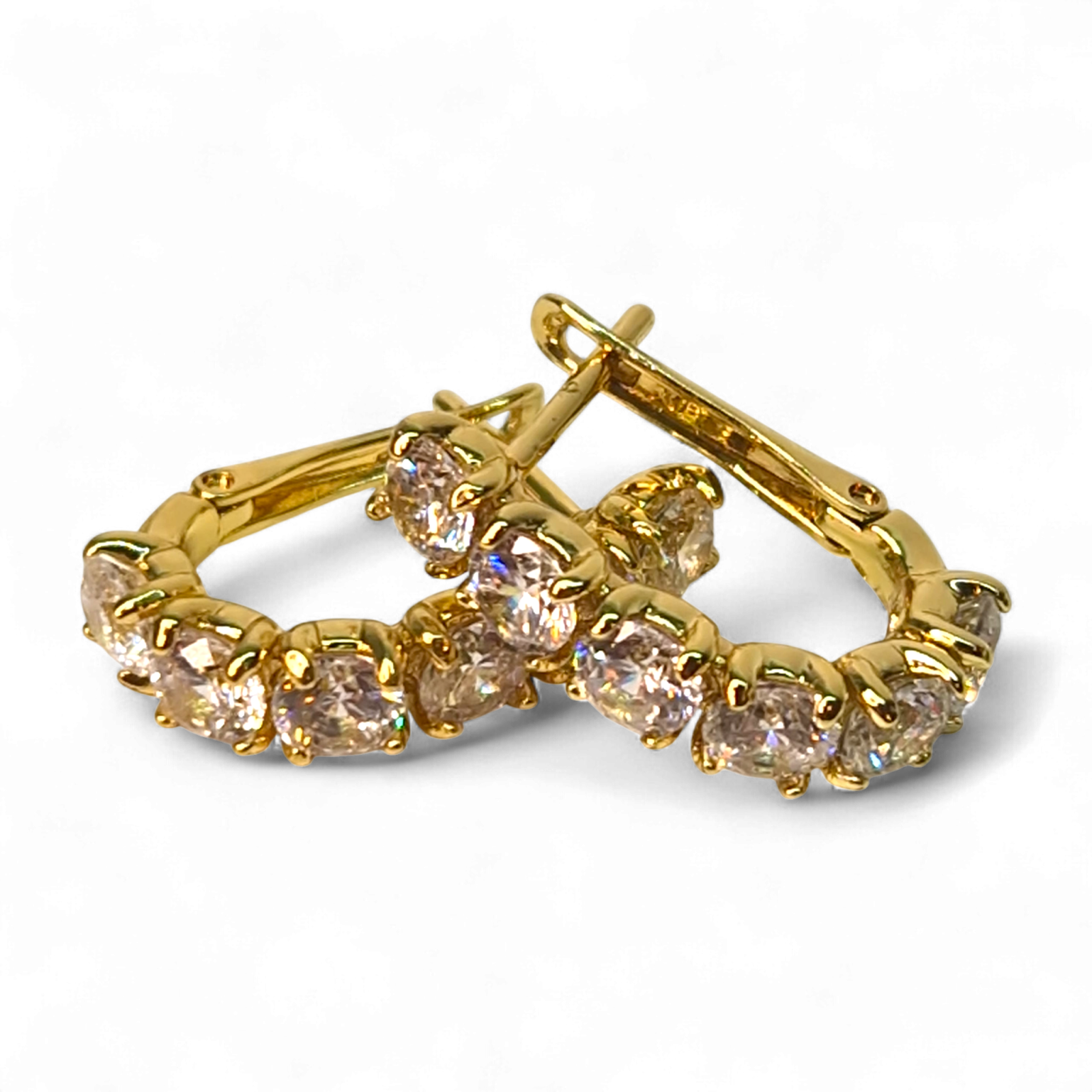 Cerceii placați cu aur Sydney sunt dovada că unele bijuterii nu au nevoie de artificii pentru a impresiona. Prin designul lor clasic, aurul cald și rândurile de cristale strălucitoare, acești cercei devin o piesă de nelipsit din colecția oricărei femei.