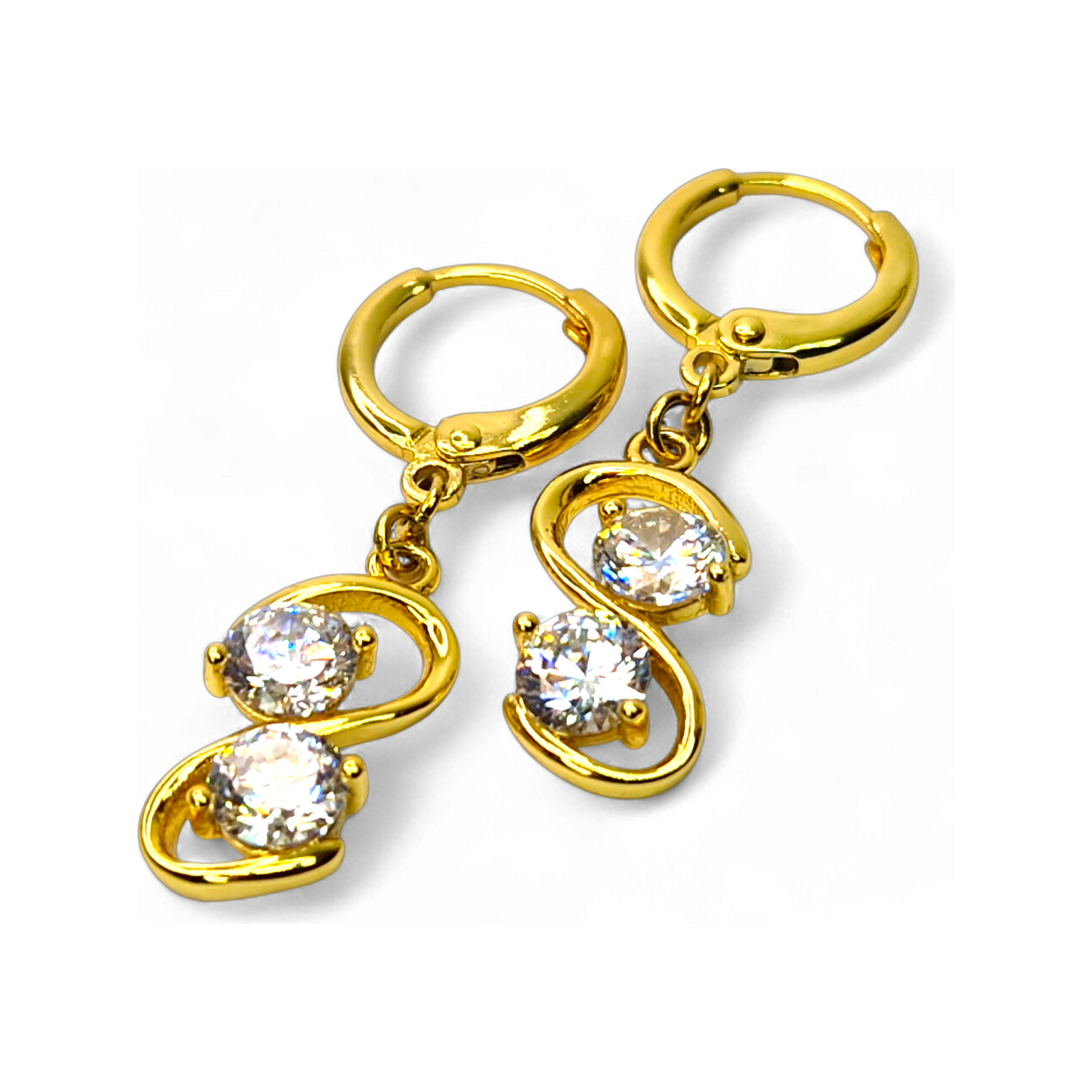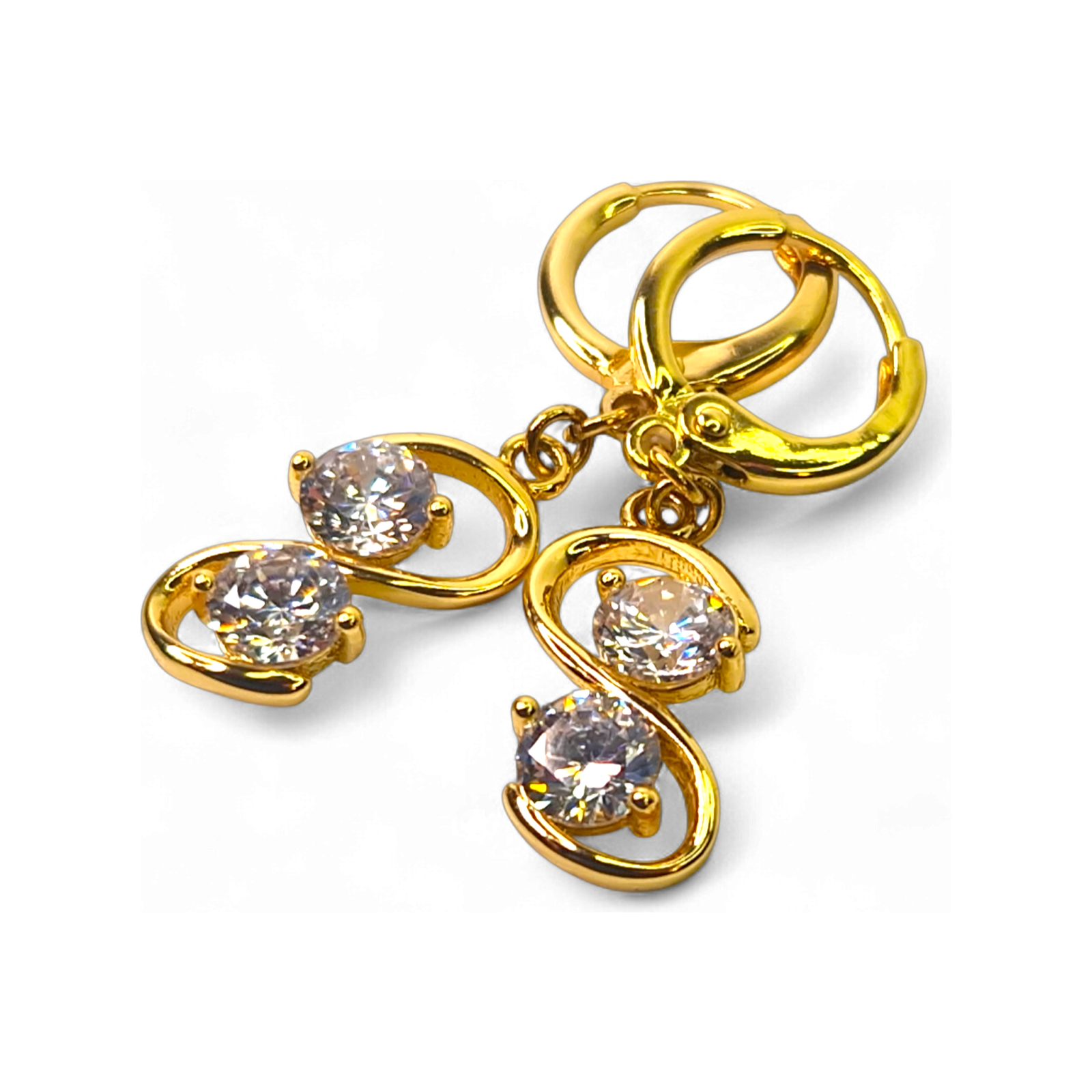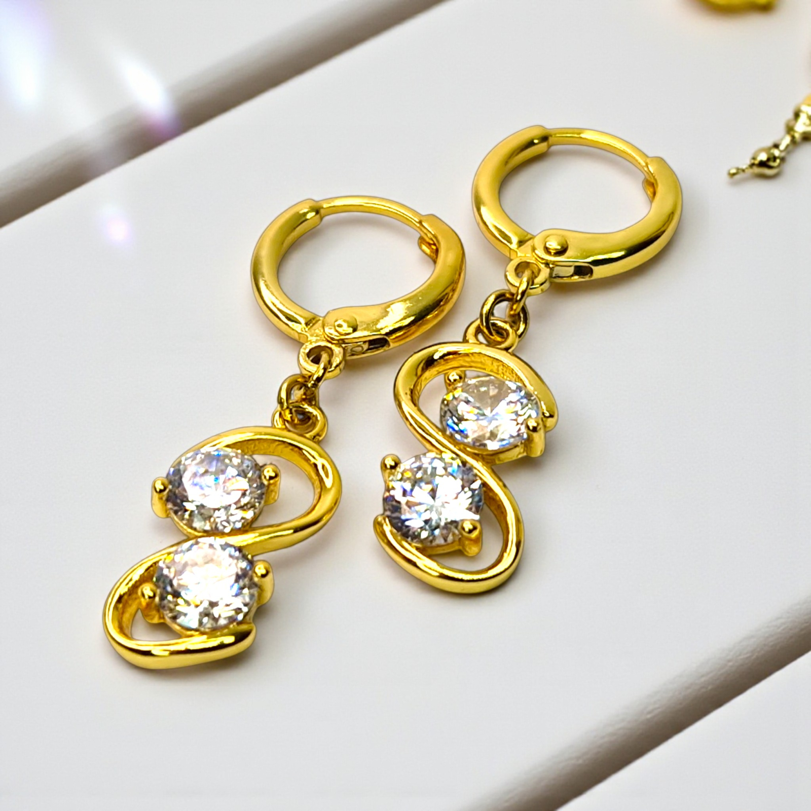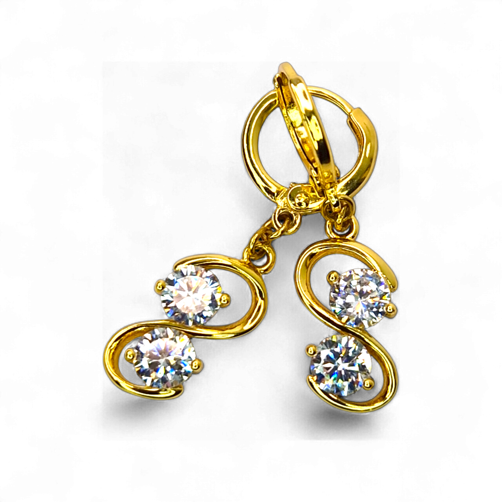 Cu un design ce combină linii curbe aurii și cristale perfect așezate, acești cercei sunt o declarație de stil. Formele lor elegante, asemănătoare literei „S”, sugerează echilibru, armonie și continuitate, în timp ce cristalele sclipitoare atrag lumina și o reflectă cu intensitate.