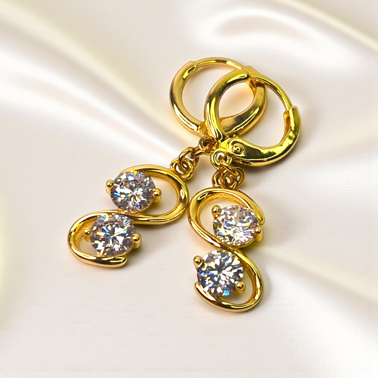 Cristalele din acești cercei nu sunt simple decorațiuni, ci adevărate puncte de lumină. Așezate pe un fundal auriu, ele creează un contrast care pune în valoare frumusețea feței și atrage atenția într-un mod discret, dar fermecător.