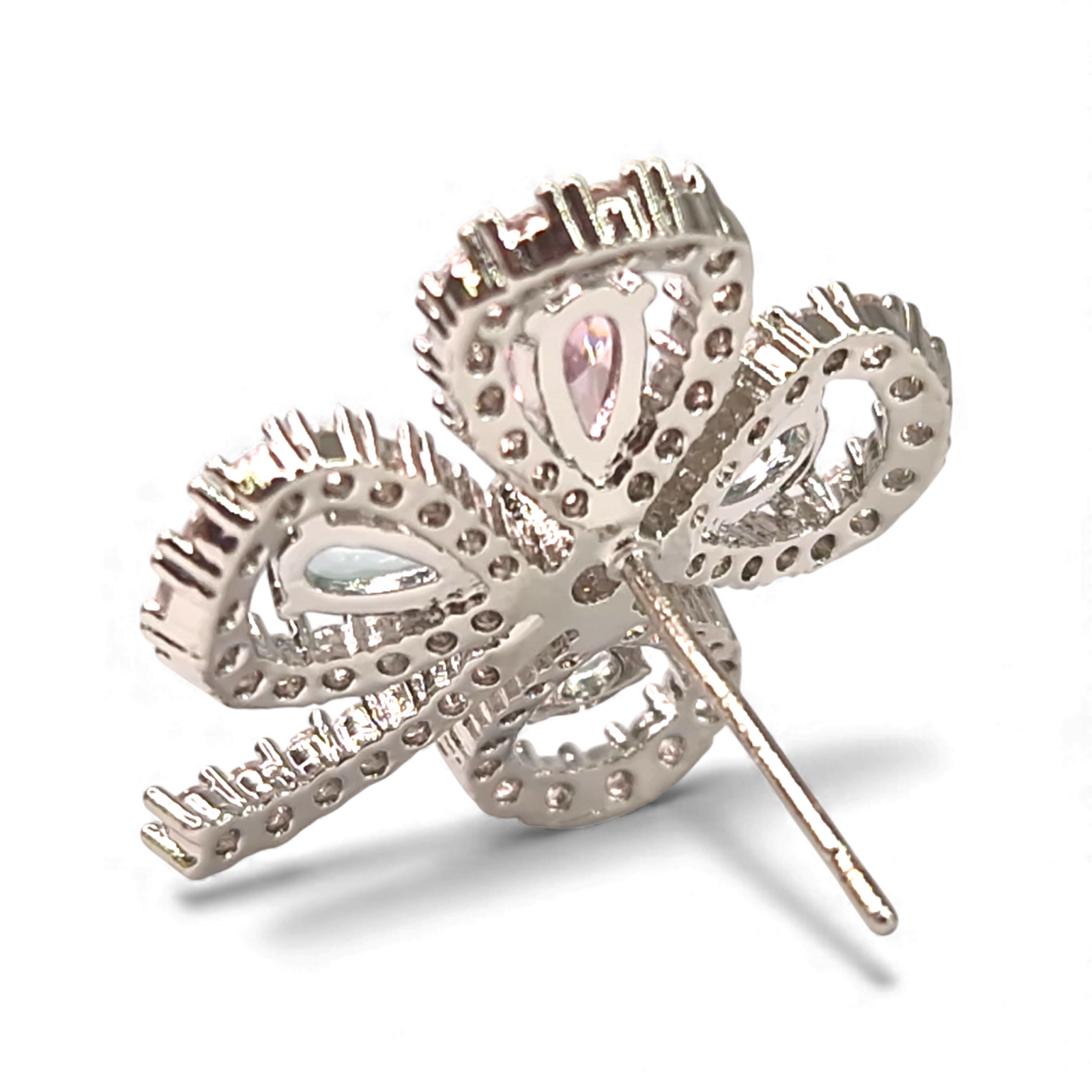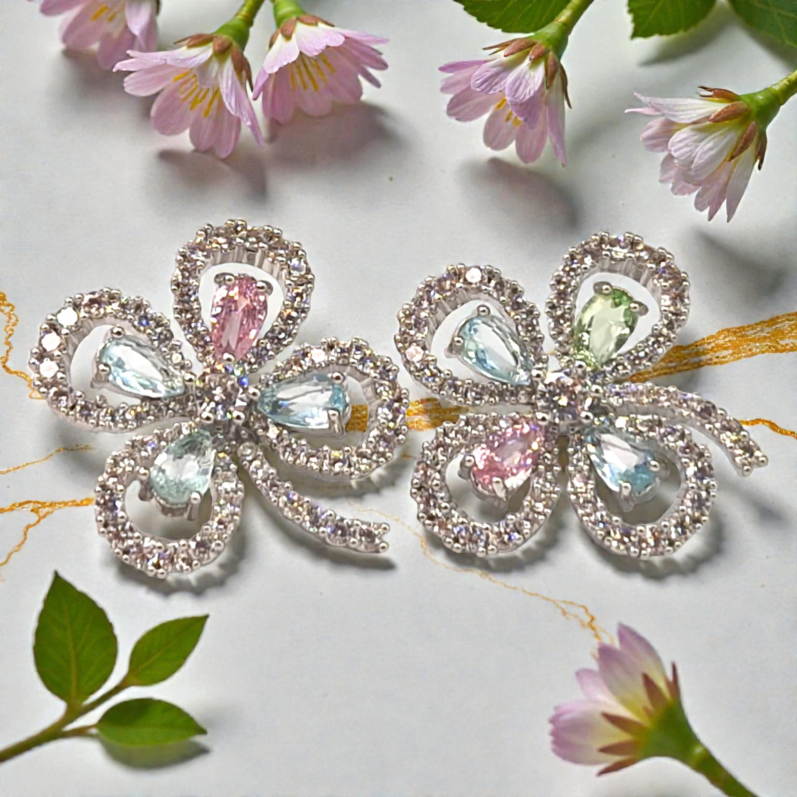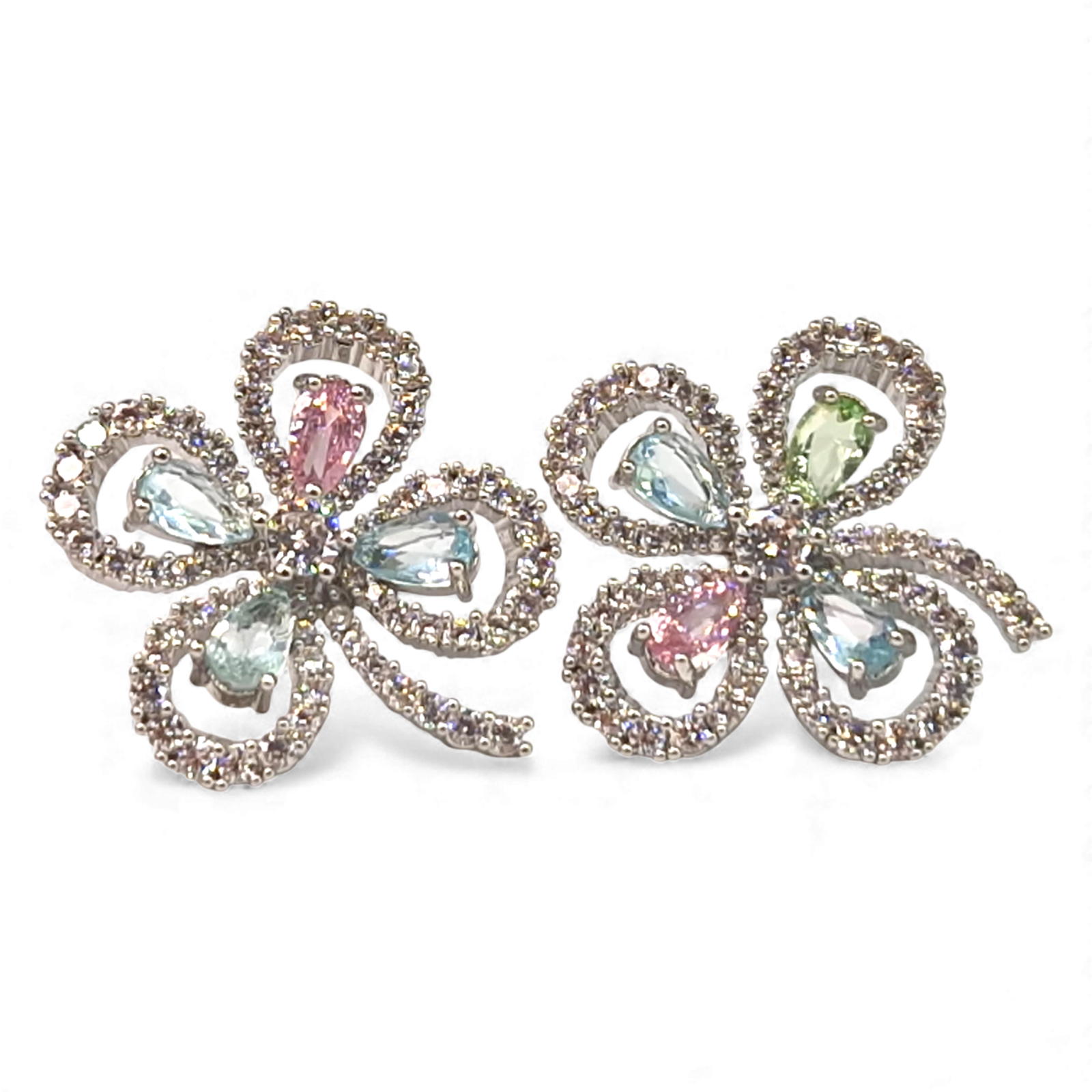 Cerceii Elysee sunt creați pentru femeile care adoră bijuteriile rafinate, cu design romantic și accente colorate. Realizați din oțel inoxidabil placați cu rodiu, acești cercei au forma unei flori stilizate, fiecare petală fiind decorată cu zirconii pastelate în nuanțe delicate de roz, verde și albastru. Elysee sunt cercei spectaculoși, feminini și ideali pentru momente în care vrei să radiezi eleganță fără efort.