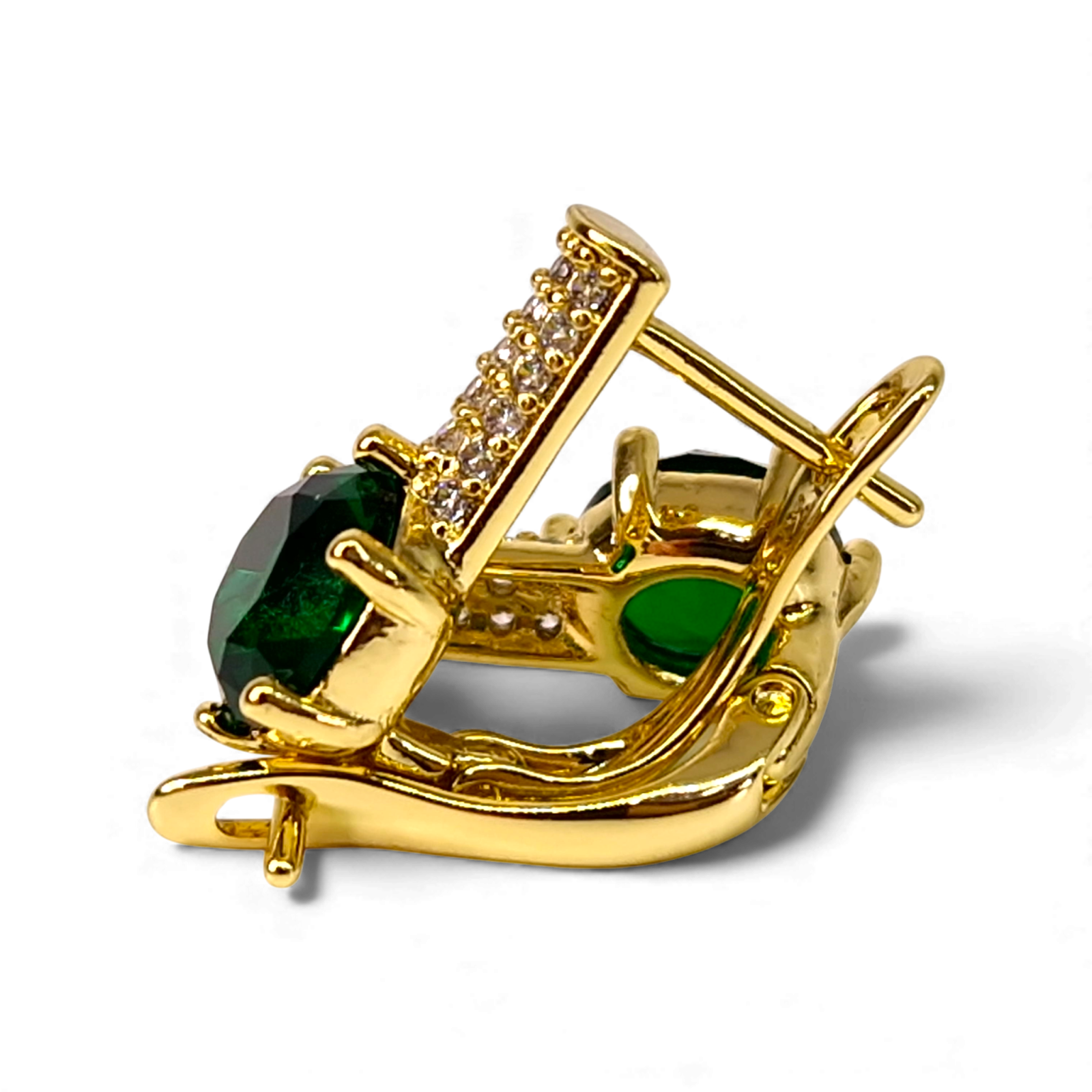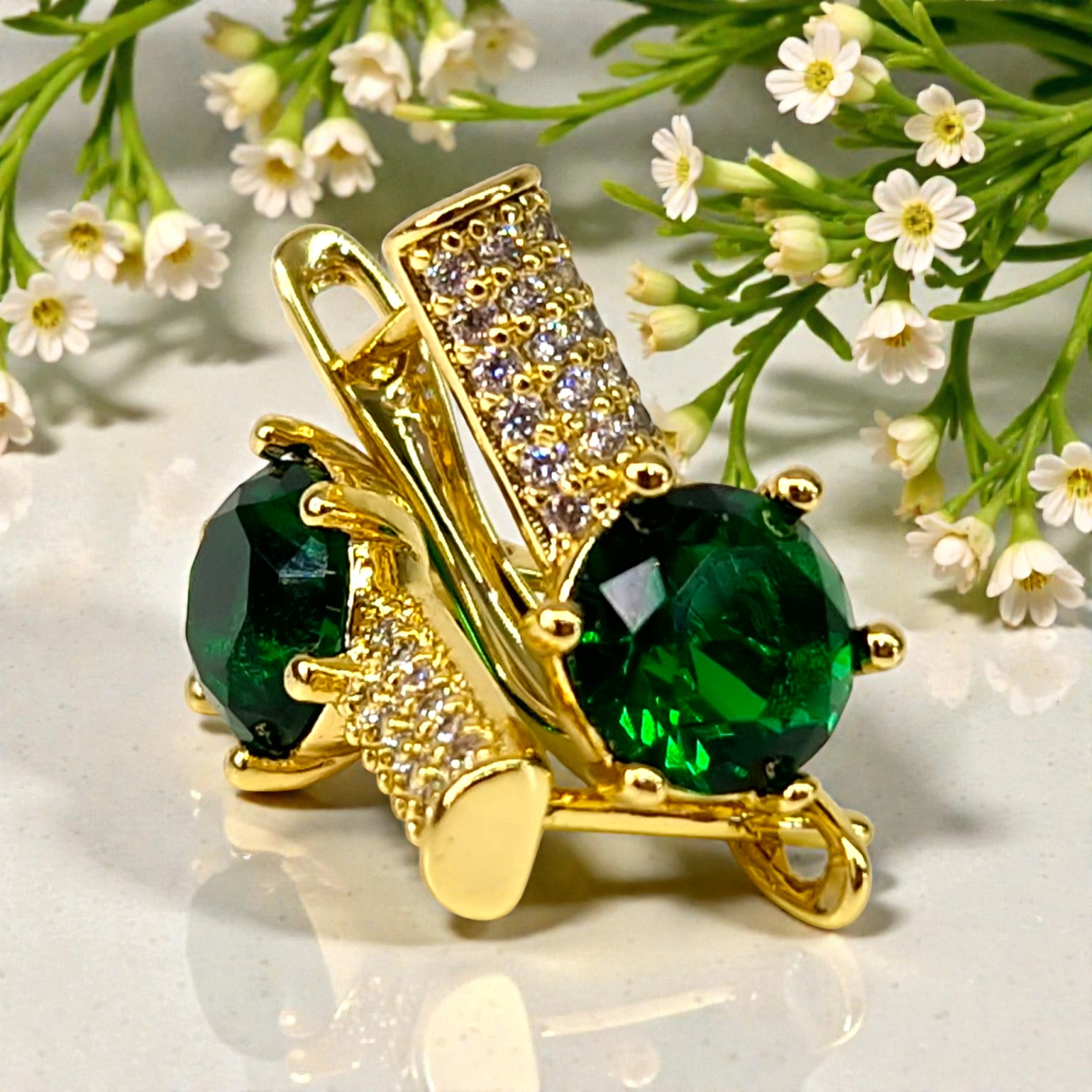 Vă prezentăm cerceii Anais Green, accesoriul perfect pentru a străluci în orice ocazie! Acești cercei eleganți sunt ornamentați cu un cristal smarald central strălucitor, cristale albe zircon și placati cu aur de 14k, oferindu-vă un look sofisticat și rafinat. Fie că vreți să impresionați la birou sau la o petrecere specială, cerceii Anais Green vă vor face să străluciți cu adevărat. Cu un design clasic și atemporal, acești cercei sunt potriviți pentru femeile moderne, care apreciază eleganța și rafinamentul. Ei sunt cadoul perfect pentru persoana dragă sau pentru a vă răsfăța pe dumneavoastră însuși. Cumpărați acum cerceii Anais Green și bucurați-vă de farmecul lor irezistibil!