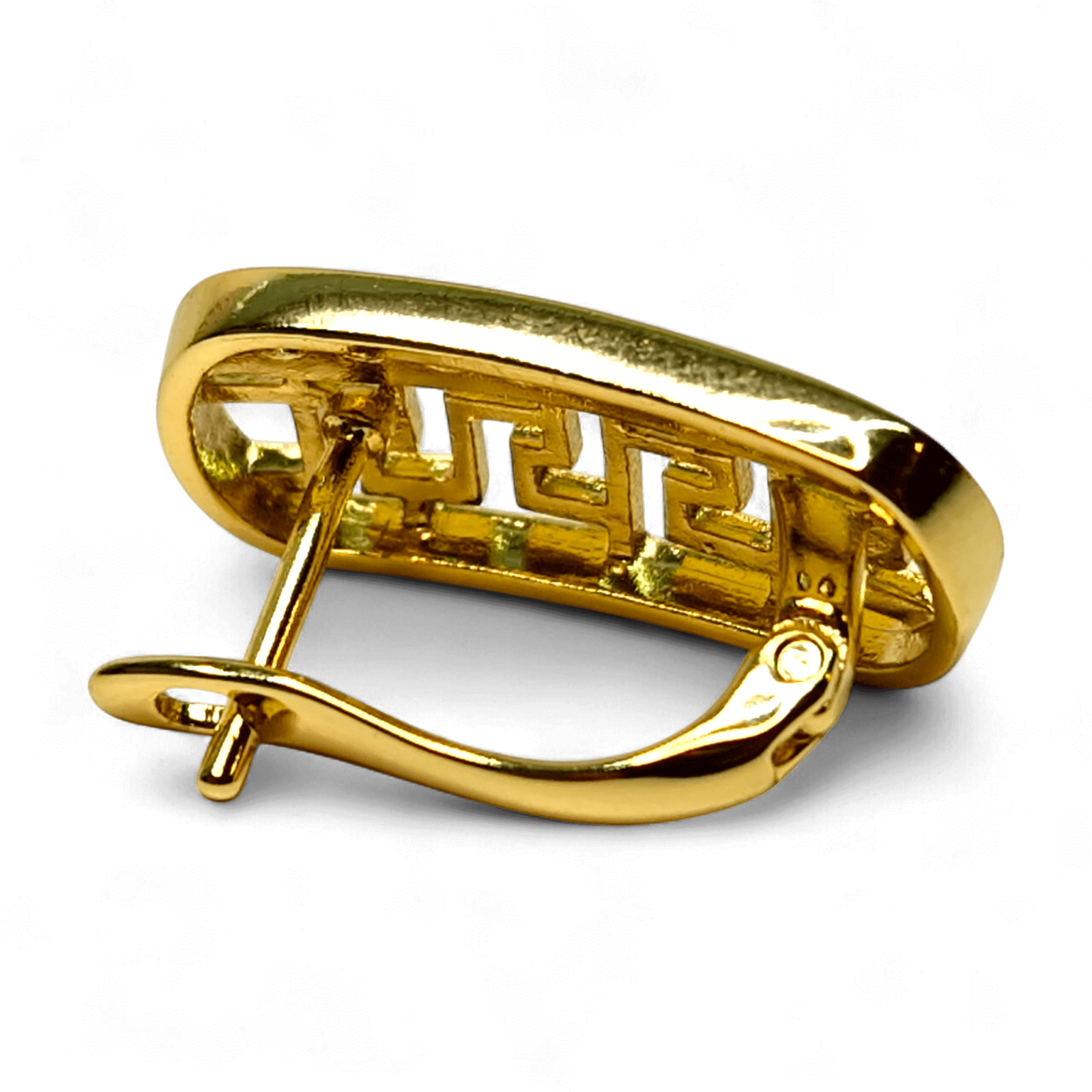 Contrastul dintre suprafața lucioasă aurie și jocul geometric conferă cerceilor un aer sofisticat, cu un design contemporan și perfect proporționat.