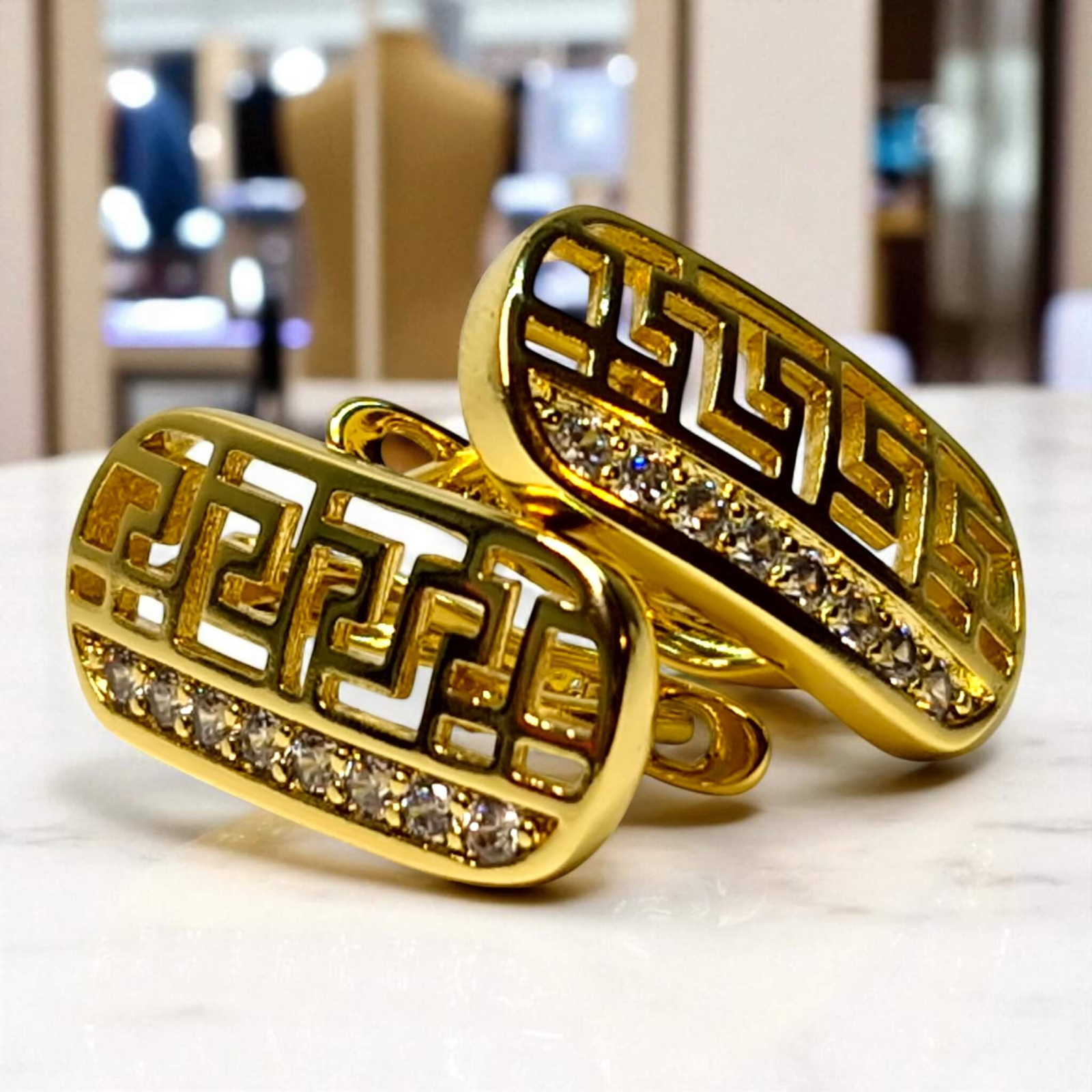 Aurora îți vor oferi o senzație de încredere, lumină și rafinament modern. Modelul geometric decupat atrage privirea într-un mod subtil, iar zirconii adaugă un plus de eleganță. Sunt cercei care aduc unicitate oricărei apariții.
