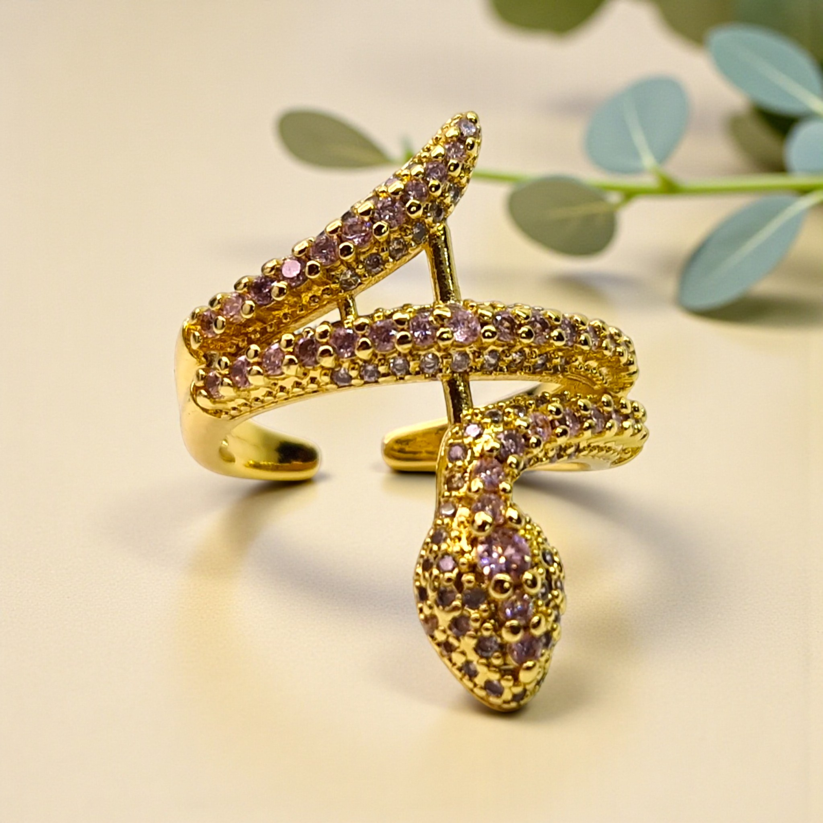 Da, forma serpentină și zirconii roz îl transformă într-o piesă statement perfectă pentru ținute moderne.